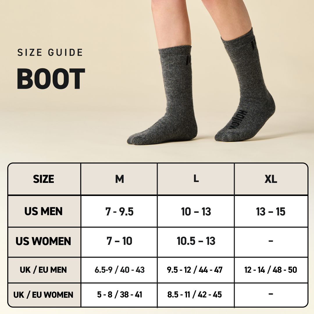 Alpaca wicks away sweat fast, keeping your feet dry and blister-free.