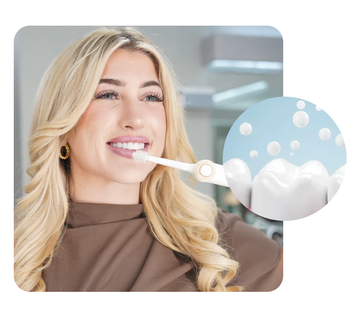 Sonic micro-vibrations remove plaque far more effectively than manual brushing without any extra effort.